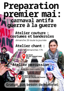 Rdv pour préparer le 1er Mai, couture banderoles et costumes, slogans … toute la journée au local!